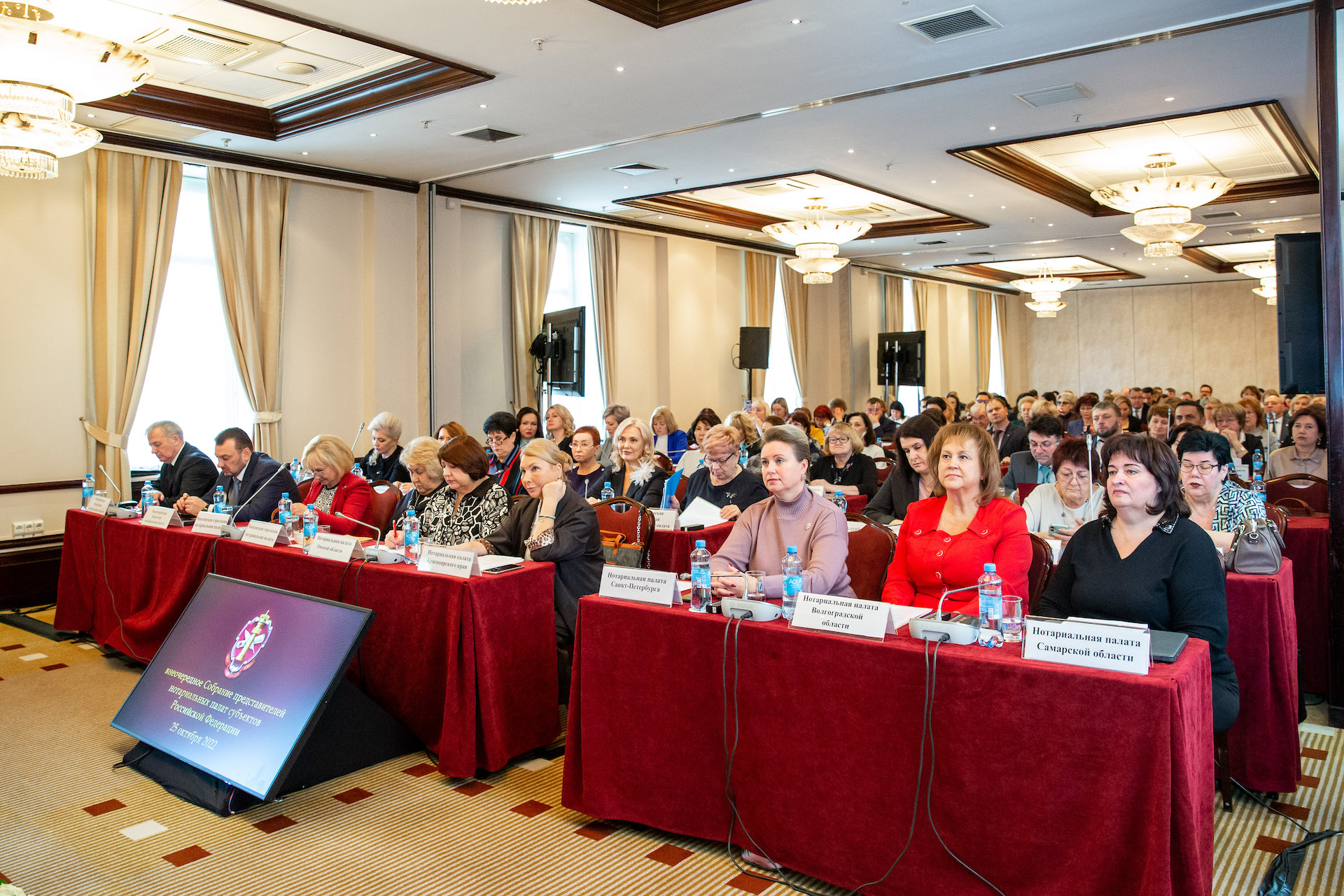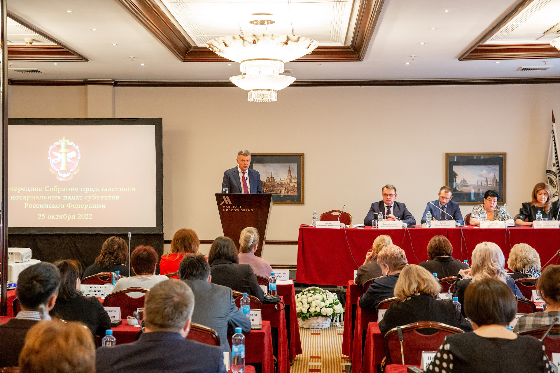 25 октября в Москве состоялось внеочередное Собрание представителей нотариальных палат регионов, которое традиционно проходит осенью каждого года. Это мероприятие, на котором обсуждаются текущие итоги деятельности и актуальные задачи, которые стоят перед нотариатом, а также принимаются решения, значимые для развития профессии. Нотариат — один из основных элементов правовой системы государства, который в любых условиях обеспечивает стабильность гражданского оборота. Это тем более актуально в нынешних условиях, когда нотариат активно включился в инициативную помощь гражданам, востребованную обществом и государством в период проведения СВО.